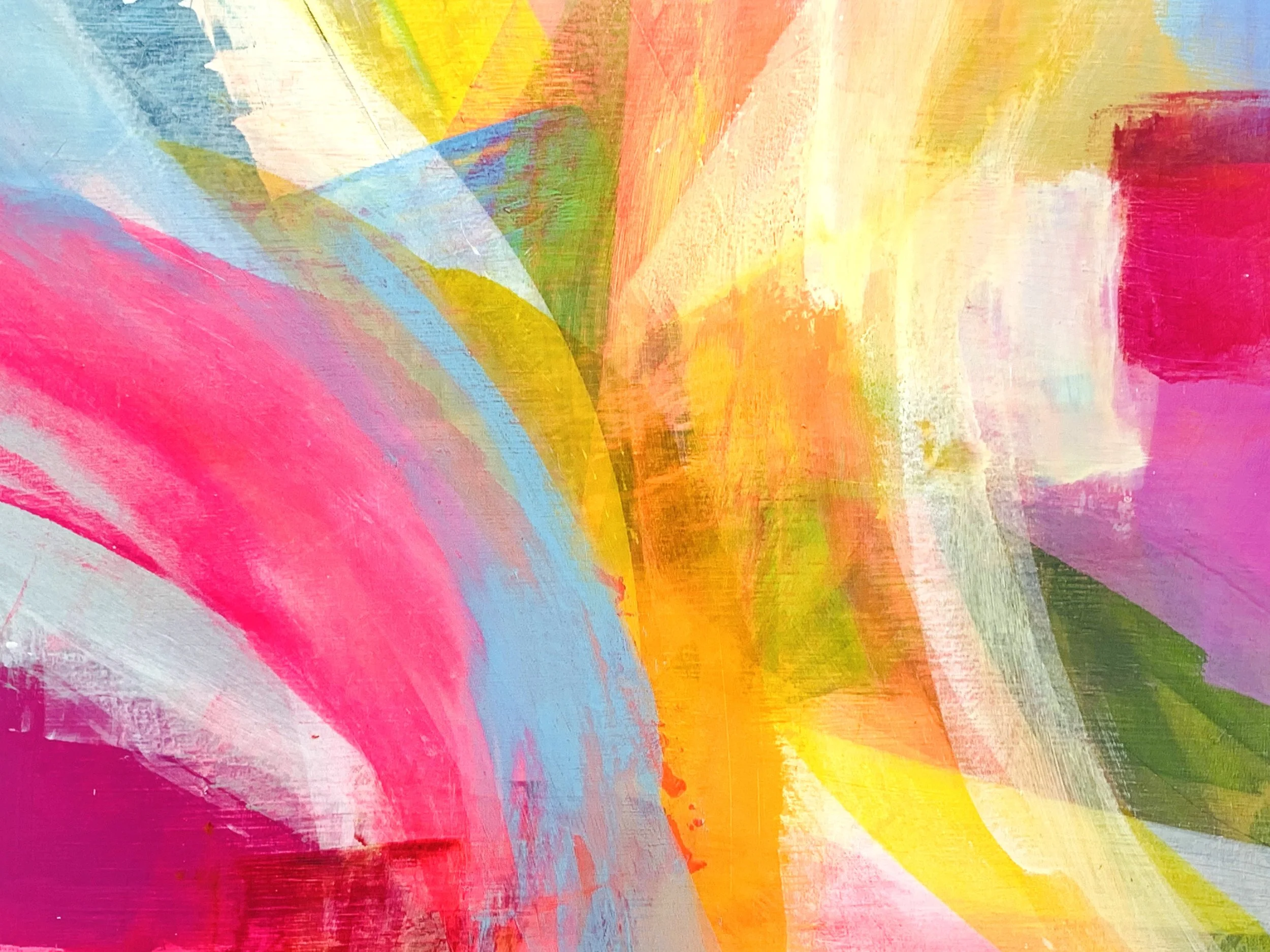 When I paint my Colour in Motion series it is like playtime in my studio. They represent my more expressive approach to painting and reflect my personality. I love to play with colour. It brings me joy. The more contradictory the better.